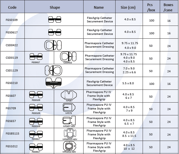 – FlexAgrip™ Catheter Securement Device: Product Codes (FGS0617).